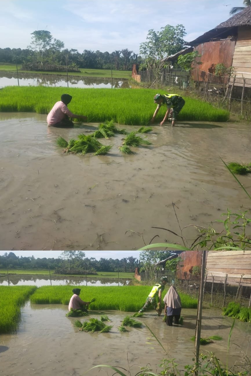 Meski harus melewati lumpur sawah yang cukup dalam, hal tersebut tidak menyurutkan semangat Babinsa dalam membantu para petani. Dengan penuh keikhlasan, Serda Kurniadi turut memikul dan mengantarkan bibit padi hingga ke petak sawah yang siap ditanami sebagai wujud nyata kemanunggalan TNI dengan rakyat.