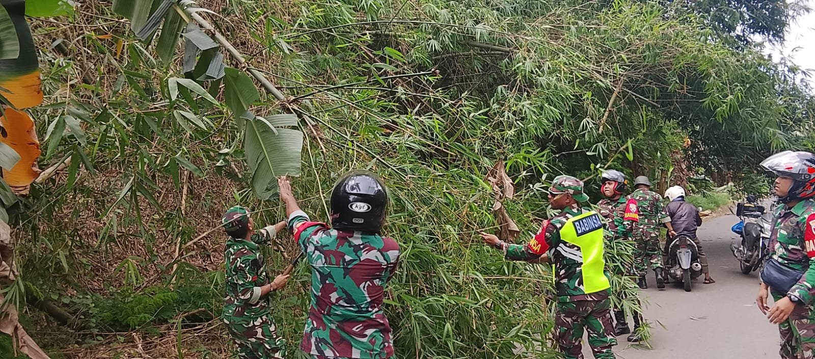 Dalam kegiatan tersebut, Serda Rifen menemukan sebuah pohon tumbang yang menutupi akses jalan utama, menghalangi arus lalu lintas dan berpotensi menimbulkan kecelakaan. Dengan sigap, ia segera melakukan evakuasi untuk membersihkan pohon tersebut, sehingga jalan dapat dilalui kembali. Tindakan cepat ini menjadi penting untuk memastikan keselamatan masyarakat yang sering beraktivitas di kawasan itu.