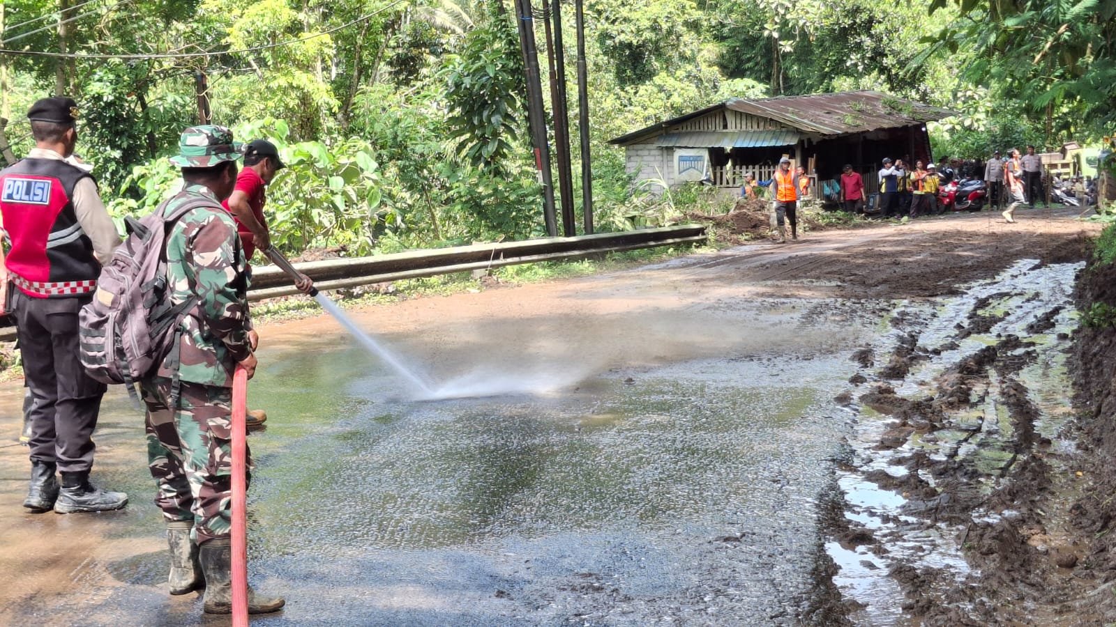 Proses pembersihan dilakukan secara gotong royong, menggunakan peralatan manual serta alat berat, termasuk semprotan air untuk mengatasi lumpur yang menghalangi jalan. Hasil dari sinergi ini terlihat ketika akses jalan dapat cepat dibuka dan arus lalu lintas kembali lancar.