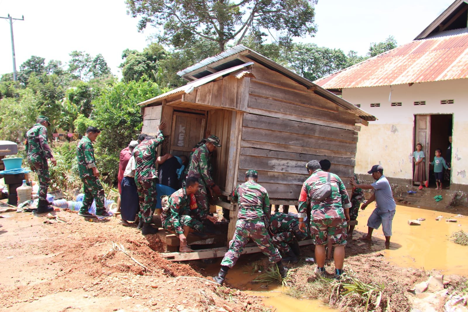 Babinsa bersama aparat pemerintah lokal dan masyarakat segera terjun ke lapangan untuk membantu evakuasi, mengamankan barang-barang, serta memantau perkembangan situasi permukaan air.