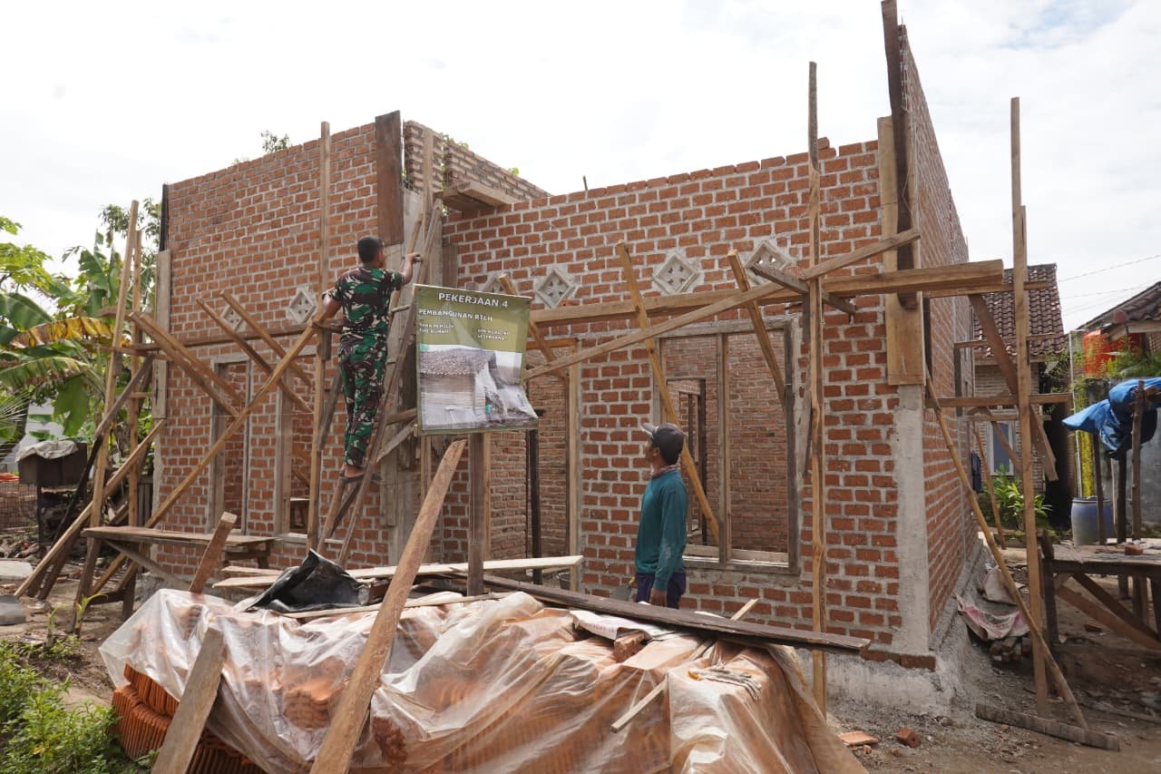 Dengan seksama, personel TNI bersama warga setempat bekerja sama memasang batu bata, meratakan adukan semen, serta memastikan setiap sudut dinding berdiri dengan kokoh. Selain itu, pemasangan kusen pintu dan jendela menandai awal baru bagi keluarga Bapak Ngadino, simbol harapan yang mulai terwujud.