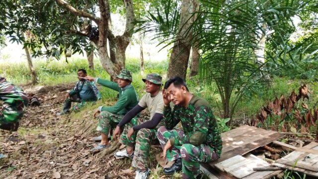 BARITO KUALA – Suasana hangat dan akrab terlihat di lokasi perehaban Rumah Tidak Layak Huni (RTLH) milik Kai Zaini, Desa Tumih, Kecamatan Wanaraya. Di sela kesibukan program TMMD Ke-126 Kodim 1005/Barito Kuala, Peltu Harimaladi terlihat bersenda gurau bersama rekan-rekannya saat jam istirahat.