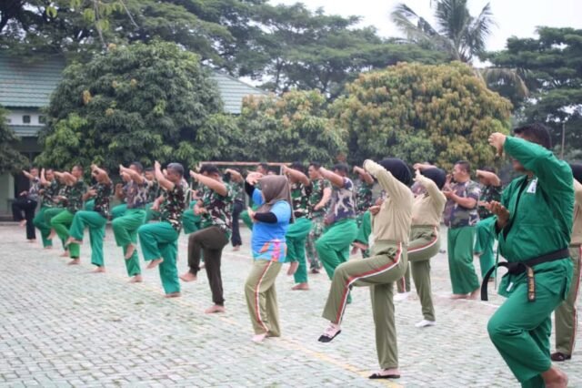 Menggala, (Tulang Bawang) — Dalam rangka meningkatkan profesionalisme dan kesiapan tempur prajurit, Kodim 0426 Tulang Bawang melaksanakan latihan Pencak Silat Militer (PSM) pada Senin, 13 Oktober 2025. Kegiatan ini berlangsung di Lapangan Pamungkas Makodim 0426 TB, Jl. Lintas Timur Sumatera KM 113, Kampung Bujung Tenuk, Kecamatan Menggala, Kabupaten Tulang Bawang.
