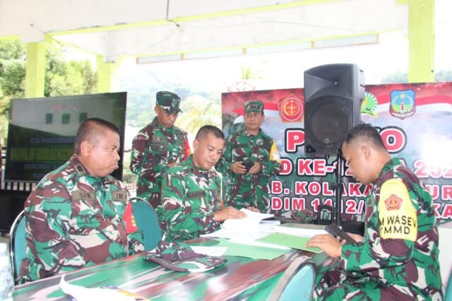 Kolaka Timur, 19 Oktober 2025 – Pelaksanaan TNI Manunggal Membangun Desa (TMMD) ke-126 Kodim 1412/Kolaka di wilayah Kecamatan Ueesi, Kabupaten Kolaka Timur, mendapat perhatian langsung dari Tim Pengawasan dan Evaluasi (Wasev). Kunjungan tersebut dipimpin oleh Mayor Arm Septian Aris, S.ST.Han, yang melakukan pengecekan kelengkapan administrasi TMMD di Komando Taktis (Kotis) TMMD ke-126.