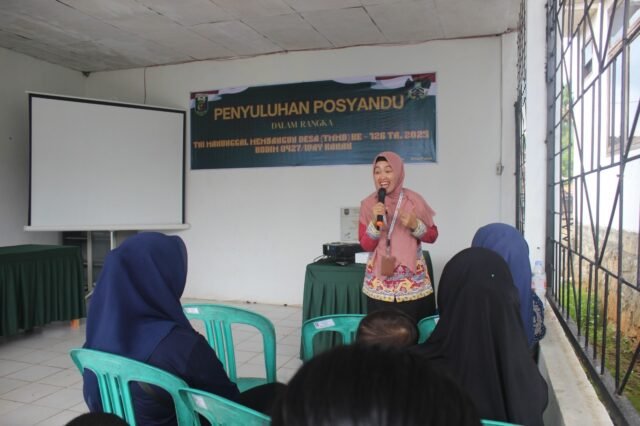 Way Kanan, Senin (20/10/2025) – Program TNI Manunggal Membangun Desa (TMMD) ke-126 Kodim 0427/Way Kanan terus menghadirkan kegiatan yang memberi dampak langsung bagi masyarakat. Kali ini, kegiatan nonfisik berupa penyuluhan Posyandu digelar di Kampung Sriwijaya, Kecamatan Umpu Semenguk, dengan menghadirkan narasumber dari Dinas Kesehatan Kabupaten Way Kanan, Ibu Hary Widyati, SKM., MPH.