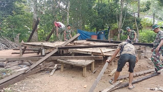 Setelah 15 tahun menempati rumah yang tidak layak, kini hunian tersebut mulai dibedah oleh Satgas TNI Manunggal Membangun Desa (TMMD) Ke-125 Kodim 1006/Banjar