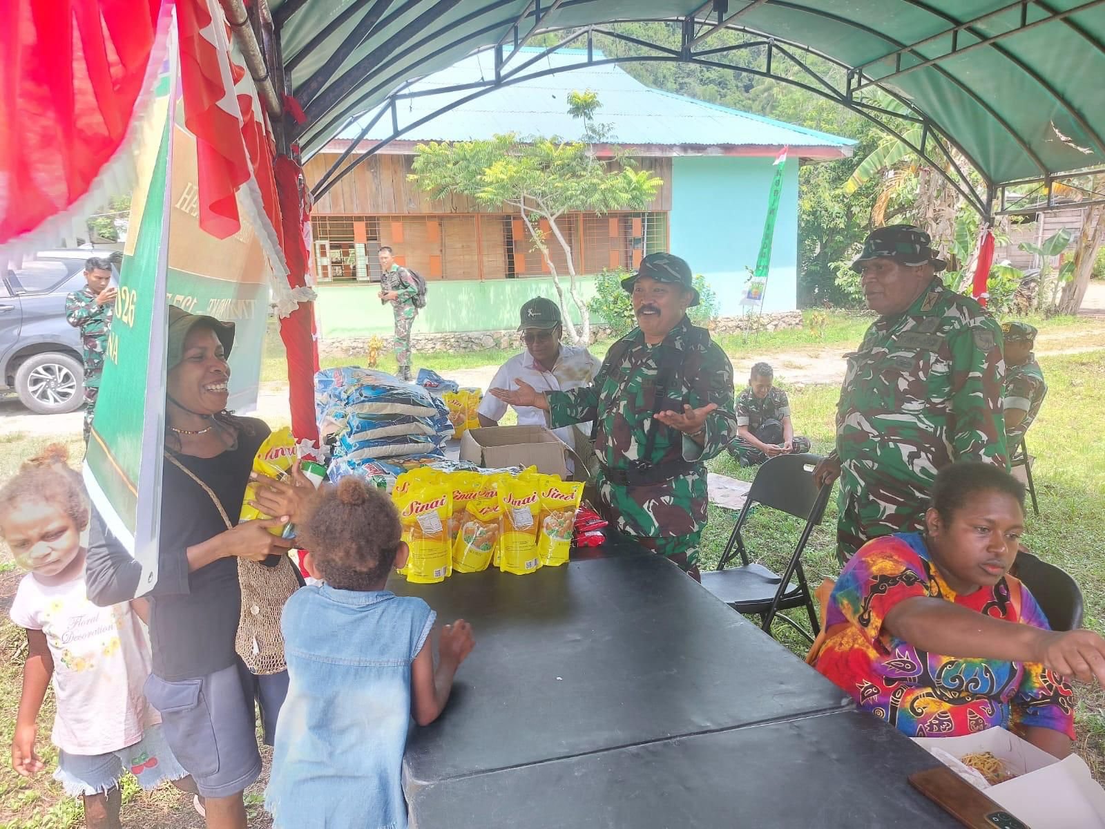 Kaimana – Program TNI Manunggal Membangun Desa (TMMD) ke-127 menggelar pasar murah di Kampung Marsi, Distrik Kaimana, Kabupaten Kaimana. Kegiatan ini dilakukan untuk memberikan kemudahan bagi masyarakat dalam memenuhi kebutuhan pokok dengan harga yang lebih bersahabat. Dengan adanya pasar murah ini, warga Kampung Marsi berkesempatan untuk berbelanja berbagai kebutuhan sehari-hari dengan harga yang lebih rendah dibandingkan dengan harga yang berlaku di pasar pada umumnya.