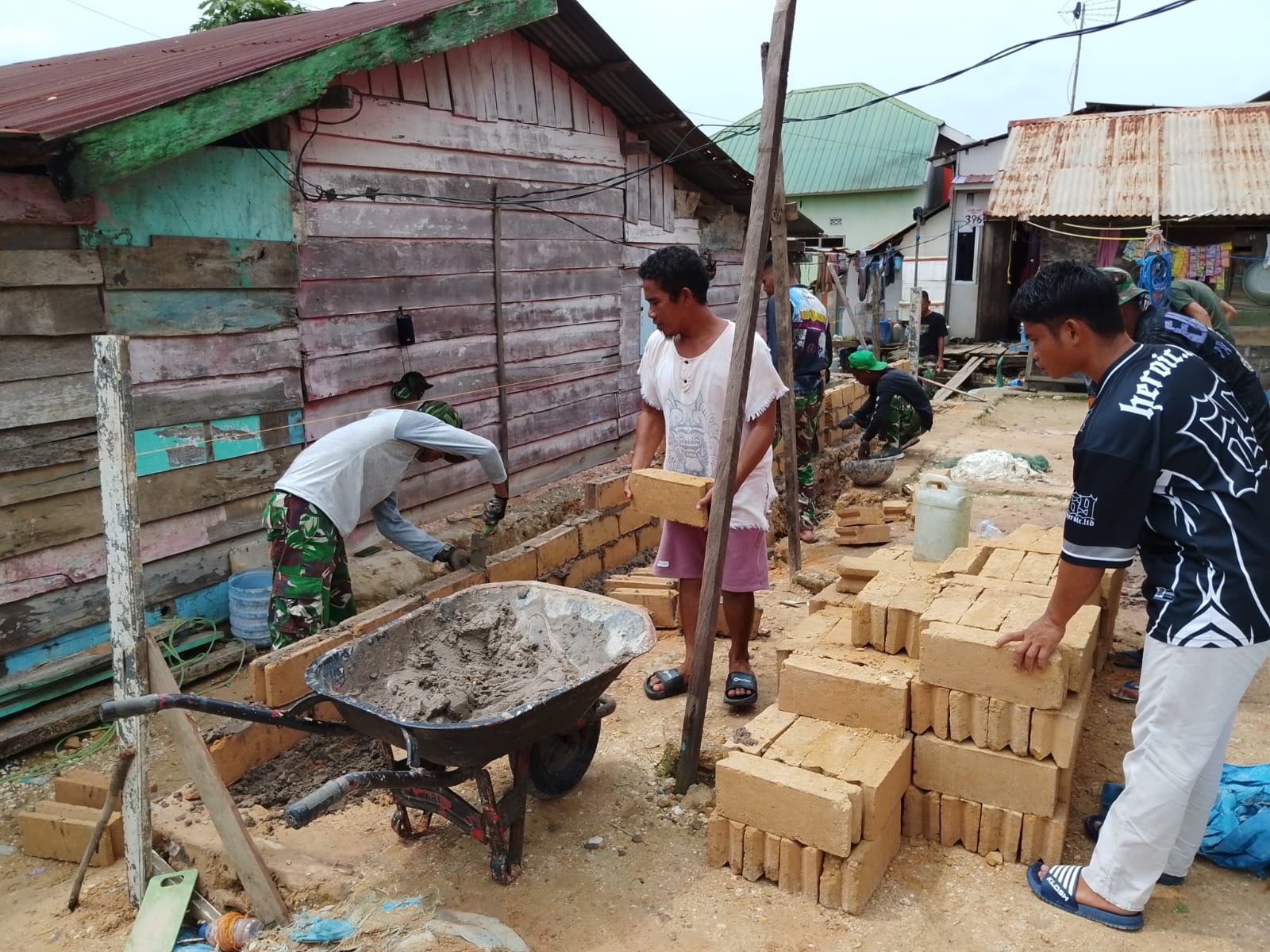 Dalam tahap terbaru, anggota Satgas bersama masyarakat setempat melakukan pemasangan dinding batako, yang merupakan komponen utama dalam konstruksi rumah. Proses pengerjaan dilakukan dengan cermat untuk memastikan bahwa rumah yang dibangun memiliki daya tahan yang baik.