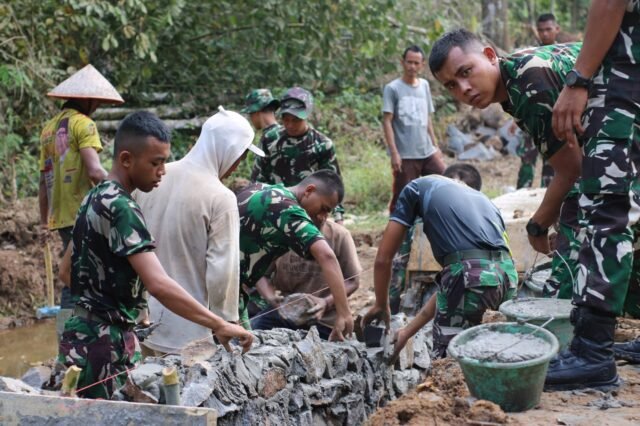 Tulang Bawang, Rabu 6 Agustus 2025 — Program TNI Manunggal Membangun Desa (TMMD) ke-125 Kodim 0426/Tulang Bawang terus berlanjut di berbagai titik sasaran fisik. Salah satu fokus utama hari ini adalah pekerjaan pembangunan talud penahan tanah (TPT) di titik jembatan penghubung antara Kampung Moris Jaya dan Kampung Agung Dalam, Kecamatan Banjar Agung.