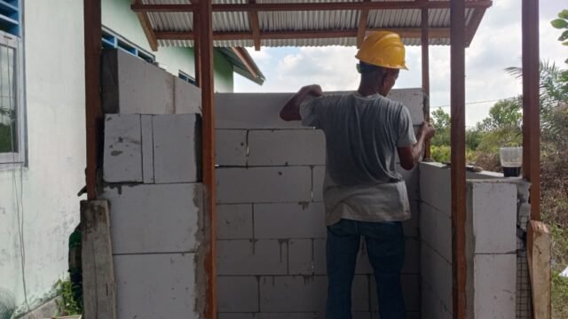 BARITO KUALA – Pembangunan fasilitas WC di sasaran TMMD Ke-126 Tahun 2025 di Desa Tumih, Kecamatan Wanaraya, menunjukkan kemajuan yang menggembirakan. Hingga saat ini, pengerjaan atap telah mencapai 85 persen, dinding 45 persen, lantai 70 persen, dan lubang septic tank 90 persen.