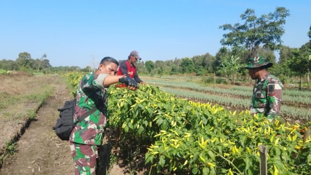 Meski tengah menjalankan berbagai sasaran fisik, anggota Satgas TMMD tetap menyisihkan waktu untuk terjun langsung membantu warga. Seperti yang dilakukan Kopda Metia, yang bersama rekannya turut membantu Usamah, warga setempat, memanen dan merawat tanaman cabai di kebunnya, Minggu (19/10/2025).