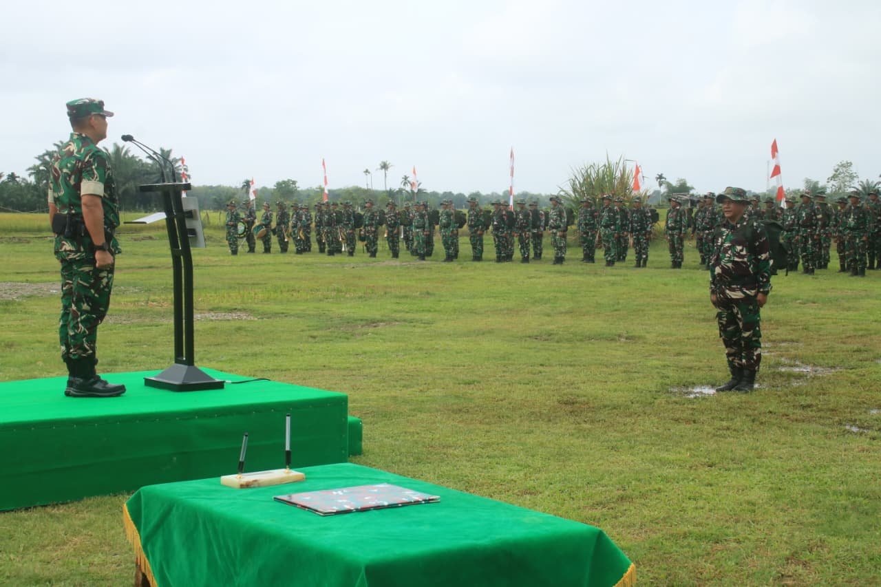 Upacara diawali dengan laporan hasil kegiatan oleh Dansatgas TMMD Letkol Inf S. Kembaren, S.E., M.I.P., CFrA.
