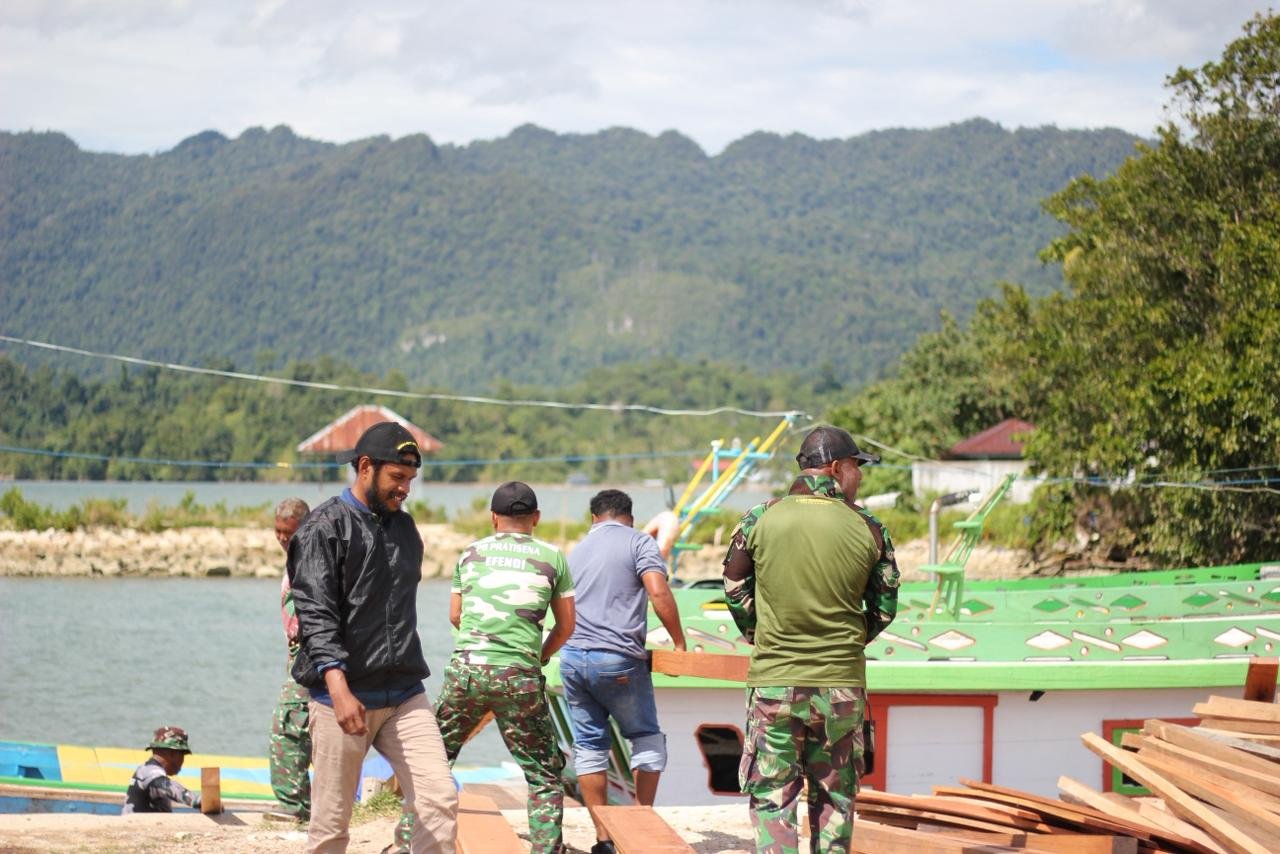 Kaimana – Dalam upaya mendukung percepatan pembangunan program TNI Manunggal Membangun Desa (TMMD) ke-127 di Kabupaten Kaimana, anggota Satgas melaksanakan pemuatan kayu dari lokasi Somel Solata menuju Pelabuhan Coa pada Kamis, 12 Februari 2026.