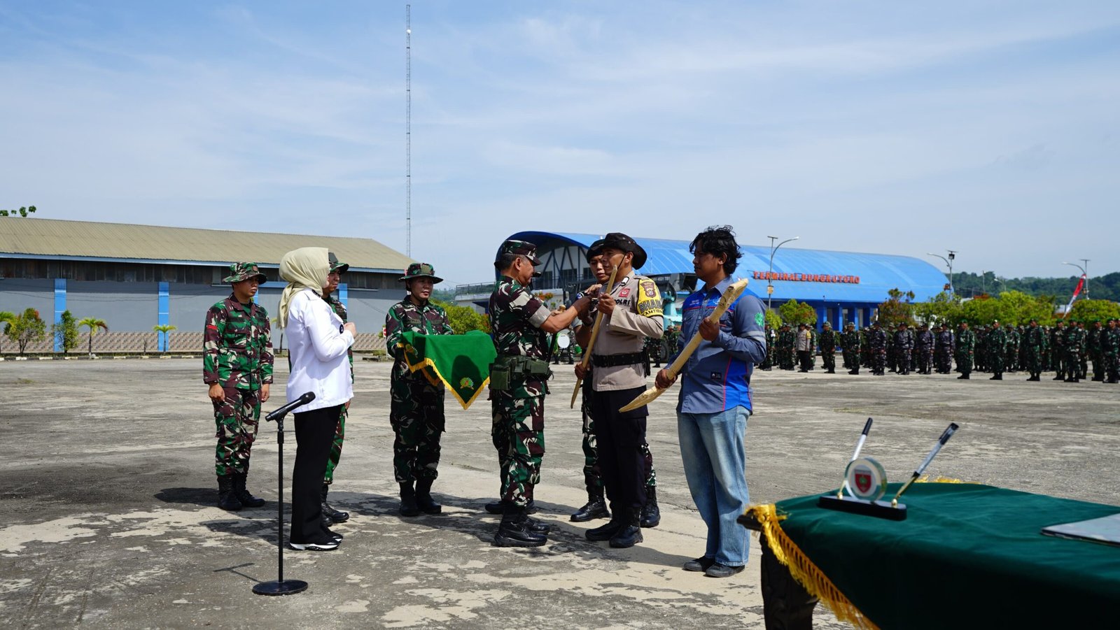 Kendari – Penutupan program Tentara Manunggal Membangun Desa (TMMD) ke-127 yang diselenggarakan oleh Kodim 1417/Kendari menandai selesainya serangkaian kegiatan pembangunan yang berlangsung selama satu bulan di Kota Kendari. Dalam acara penutupan, Kolonel Bangun Nawoko menyampaikan harapannya bahwa berbagai kegiatan yang telah dilaksanakan dapat menjadi pendorong bagi masyarakat untuk terus maju, baik dari aspek ekonomi maupun sosial.