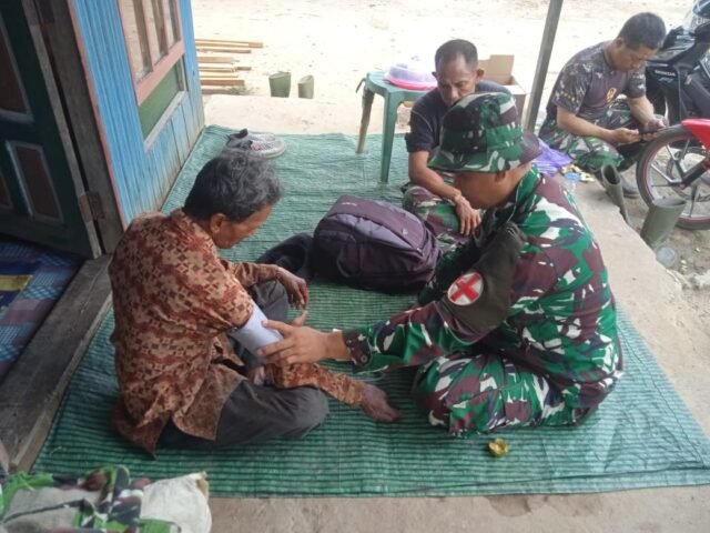 BARITO KUALA – Pengabdian tanpa batas menjadi ciri khas yang melekat pada anggota TNI, terutama dalam pelaksanaan TNI Manunggal Membangun Desa (TMMD) Ke-126 di wilayah Kodim 1005/Barito Kuala. Tak hanya mengutamakan pembangunan fisik yang masif, mereka juga terus memperlihatkan kepedulian mendalam terhadap kesehatan masyarakat setempat.