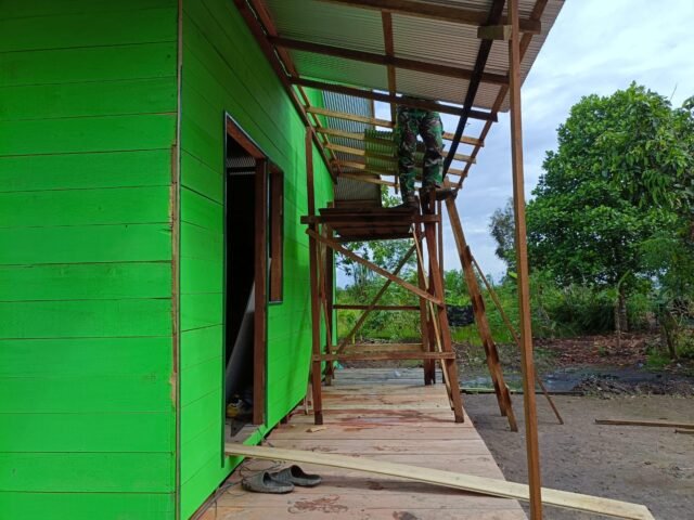 BARITO KUALA – Suara palu bertalu dari sudut Desa Tumih, Kecamatan Wanaraya. Di antara tumpukan papan dan cat, tampak sejumlah prajurit TNI bersama warga saling bahu-membahu memperbaiki rumah sederhana milik Kai Salamun, salah satu warga lanjut usia yang menjadi penerima manfaat program TNI Manunggal Membangun Desa (TMMD) Ke-126 Kodim 1005/Barito Kuala.