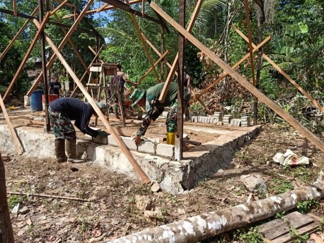 MARTAPURA – Pembangunan rumah milik Ibu Sarti, warga Desa Belimbing Lama, Kecamatan Sungai Pinang, yang menjadi sasaran fisik program TNI Manunggal Membangun Desa (TMMD) Ke-125 Kodim 1006/Banjar kini telah menunjukkan perkembangan signifikan. Dinding batako rumah tersebut mulai terlihat berdiri kokoh.