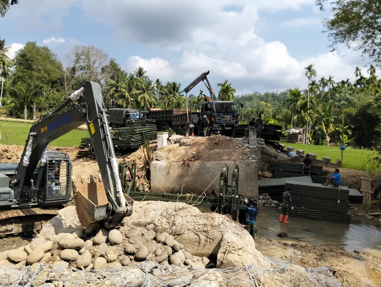 Dalam kegiatan ini, sejumlah personel dari Kodim 0103/Aceh Utara, Yonzipur 3/YW sebagai pelaksana utama, serta Denzibang 2/IM, berkolaborasi secara profesional dan terpadu untuk memastikan kelancaran pembangunan jembatan.