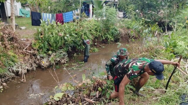 Salah satunya terlihat pada Rabu (22/10), ketika Serma Ardiansyah, anggota Satgas TMMD Ke-126 Kodim 1005/Barito Kuala, ikut turun langsung ke sungai untuk membantu warga membersihkan aliran air dari sampah dan semak liar.