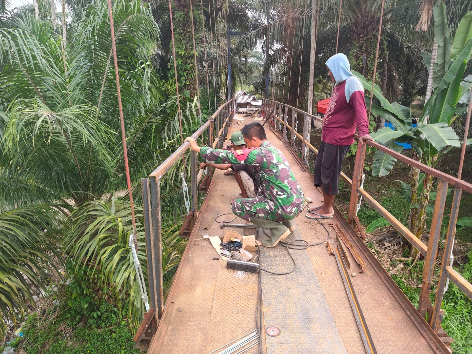 Babinsa Koramil 1006-01/SP Lulus Setyanto turut serta dalam kegiatan tersebut menyatakan bahwa gotong royong ini bertujuan untuk membersihkan lingkungan sekitar kantor desa agar aliran air tetap lancar dan tidak terjadi penyumbatan yang bisa memperparah banjir di musim hujan.