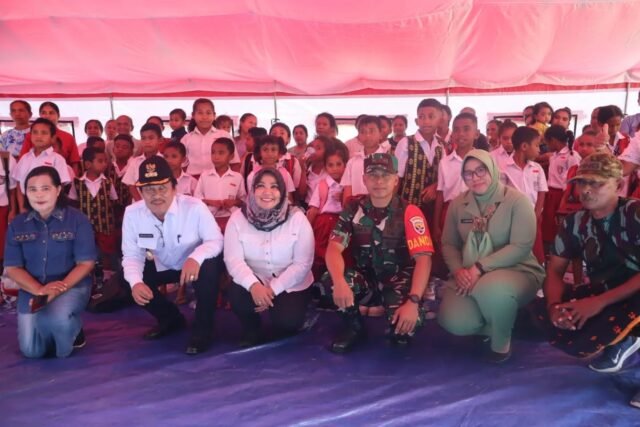 Mauponggo, Nagekeo – Komandan Kodim 1625/Ngada, Letkol Inf. Imam Subekti, S.E., didampingi Ibu dan anggota Babinsa dari Koramil 1625-04/Mauponggo, menghadiri secara langsung kegiatan Aksi Peduli Sosial yang diselenggarakan oleh Kelompok Masyarakat Peduli (KMP) bekerja sama dengan Kementerian Sosial Republik Indonesia bertempat di Desa Sawu, Kecamatan Mauponggo, Kabupaten Nagekeo.