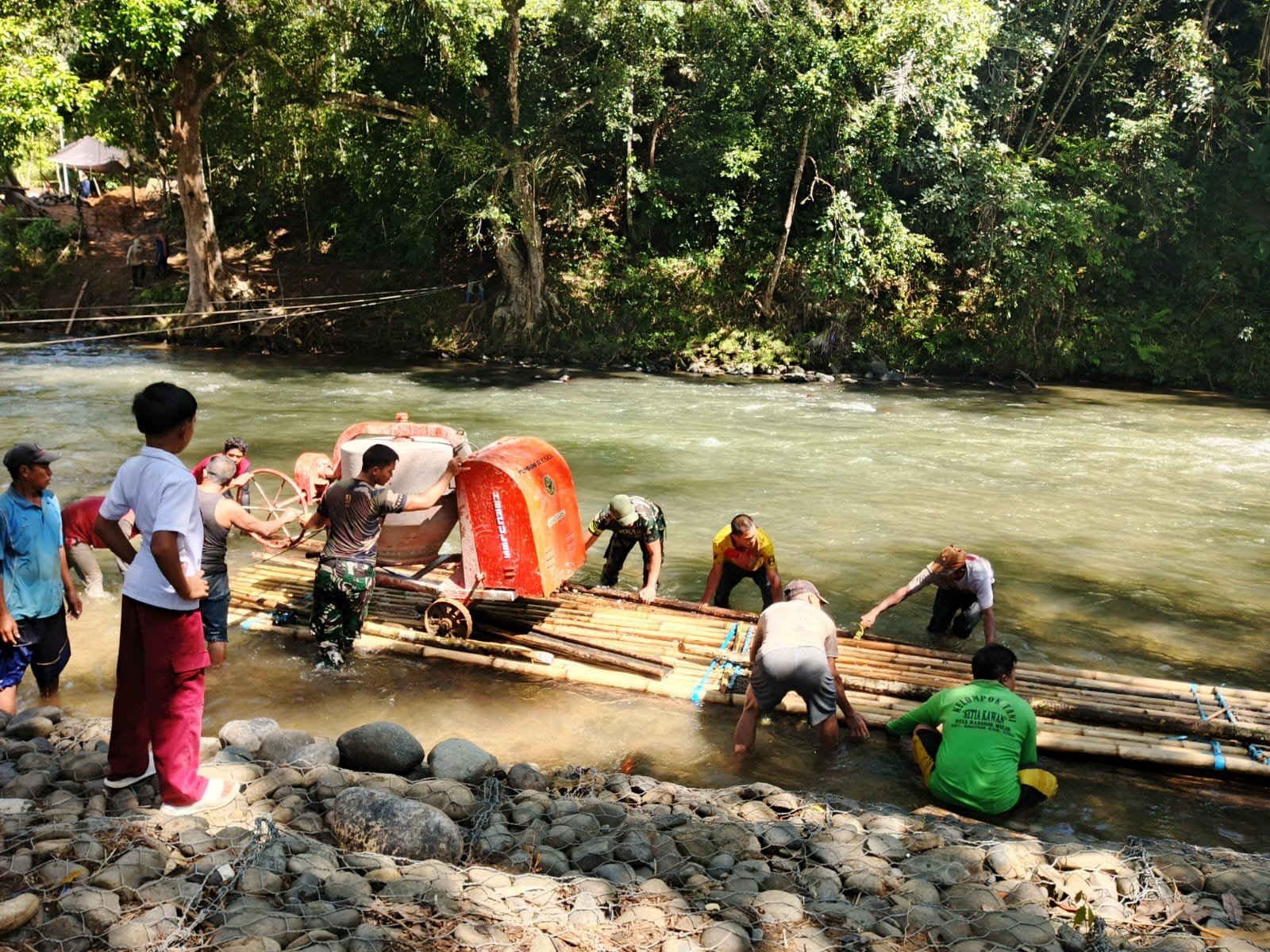Kapten Inf Jupardi Sinurad yang berada di lokasi menjelaskan bahwa molen harus dibawa ke sisi seberang sungai untuk pengecoran pondasi jembatan.