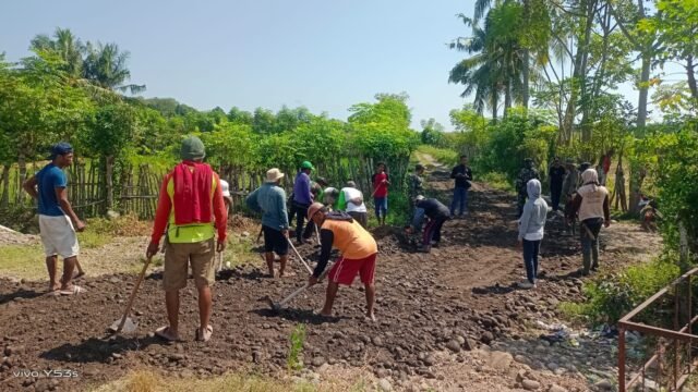 NTB – Sumbawa Besar, 25 Juli 2025 — Suasana penuh semangat dan kebersamaan terlihat di Desa Kalabeso, Kecamatan Buer, saat personel Satgas TMMD ke-125 Kodim 1607/Sumbawa bersama warga setempat bergotong royong mengerjakan pengerasan dan penimbunan jalan usaha tani.