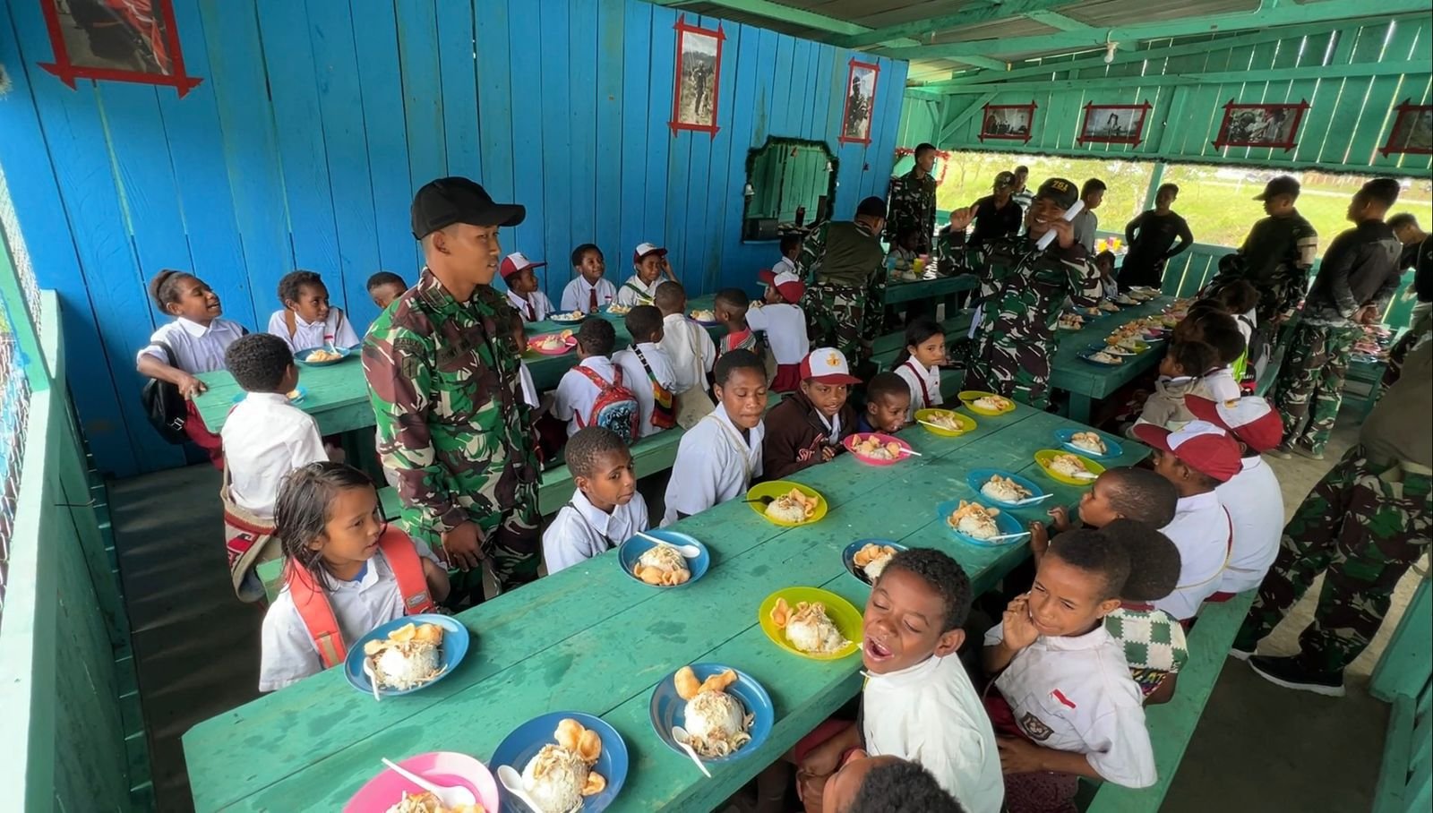 TNI di Pegunungan Bintang Gelar Makan Bersama Siswa, Dukung Pendidikan dan Kebersamaan