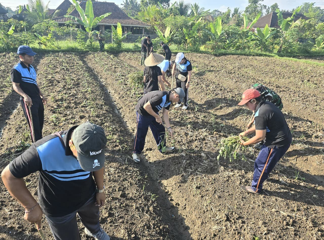BALI – Badung, 02 November 2025 — Dalam rangka mendukung program Ketahanan Pangan (Hanpangan) nasional, Satgas TMMD Ke-126 Kodim 1611/Badung melaksanakan kegiatan penanaman ubi ungu di Desa Bongkasa Pertiwi, Kecamatan Abiansemal, Kabupaten Badung, Minggu (02/11/25). Kegiatan ini menjadi salah satu sasaran tambahan dalam TMMD, yang tidak hanya berfokus pada pembangunan infrastruktur, tetapi juga peningkatan kualitas hidup masyarakat melalui sektor pangan.