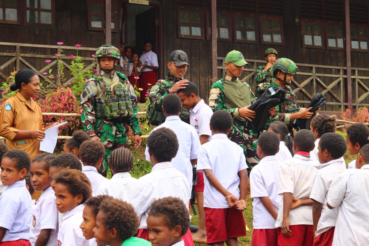 Okpol, Pegunungan Bintang — Pos Okpol dari Satgas Swasembada Yonif 751/Vira Jaya Sakti (VJS) baru-baru ini mengadakan kegiatan pembinaan teritorial dengan memberikan seragam dan perlengkapan sekolah kepada siswa-siswi di SD Okpol. Kegiatan ini dipimpin oleh Danpos Okpol, Letda Inf Lupi Kuncoro, sebagai bentuk nyata kepedulian TNI dalam mendorong pendidikan serta semangat belajar anak-anak di kawasan perbatasan pada Kamis, 26 Februari 2026.