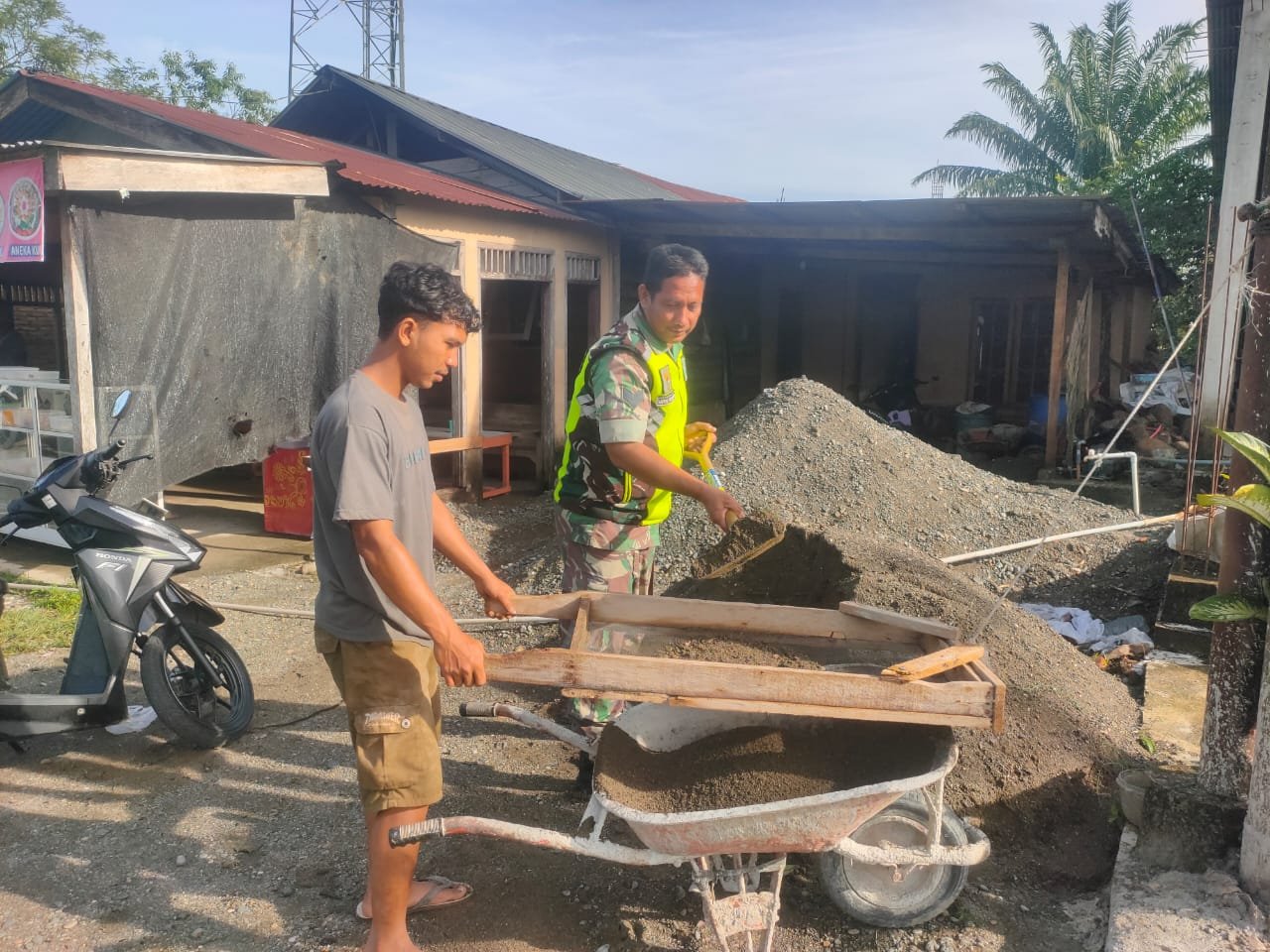 ACEH BARAT – Wujud kepedulian terhadap masyarakat ditunjukkan oleh Serka Saferi Pasaribu, Babinsa Koramil 03/Kaway XVI Kodim 0105/Aceh Barat, dengan membantu warga mengayak pasir yang akan digunakan untuk plester dinding rumah di Desa Alue Tampak, Kecamatan Kaway XVI, Kabupaten Aceh Barat, Senin (29/09/2025).
