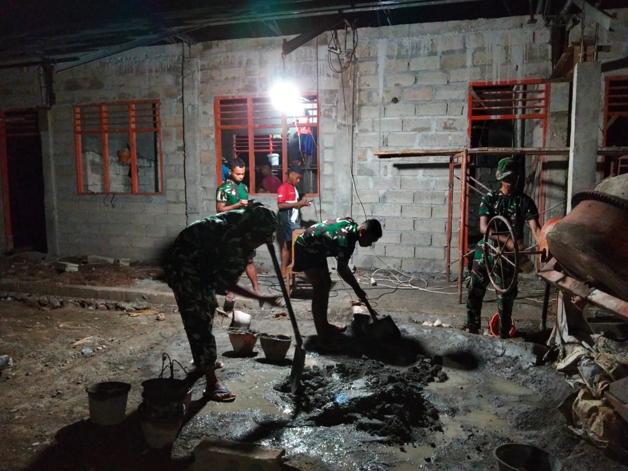 Hal tersebut disampaikan Pelda Rahmat anggota Satgas TMMD di lokasi pekerjaan, Selasa (24/2/2026). Ia menjelaskan bahwa saat ini personel Satgas TMMD tengah melaksanakan tahap plester dinding dan pengacian bangunan sebagai bagian dari proses finishing.