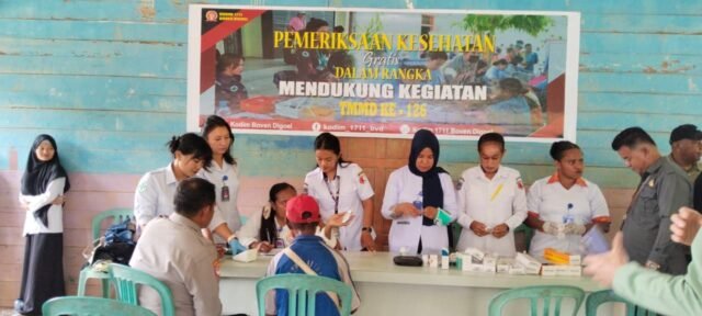 Boven Digoel – Pemeriksaan Kesehatan, Pengobatan Massal oleh Satgas TMMD ke 126 Kodim 1711/BVD, dalam rangka mendukung kegiatan TMMD ke 126 yang dilaksanakan di Kampung Waropko Distrik Waropko, telah mendapat apresiasi dari masyarakat setempat. Kegiatan yang meliputi cegah stunting, pemberian paket bantuan nutrisi tambahan, dan pemeriksaan serta pengobatan gratis untuk lansia, telah memberikan manfaat besar bagi masyarakat.