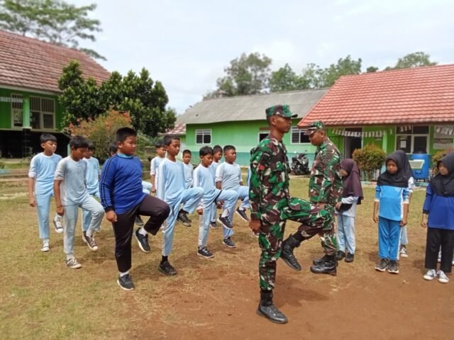 Way Kanan – Kamis (23/10/2025), Satuan Tugas TNI Manunggal Membangun Desa (TMMD) ke-126 Kodim 0427/Way Kanan memberikan pelatihan Peraturan Baris-Berbaris (PBB) kepada siswa-siswi SDN 1 Sriwijaya, Kecamatan Blambangan Umpu, Kabupaten Way Kanan.