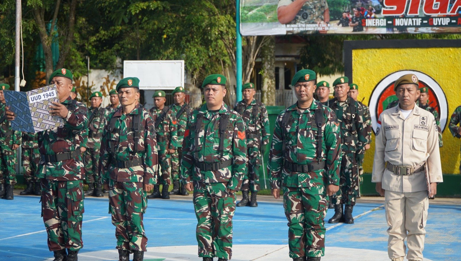 HULU SUNGAI UTARA – Dalam semangat kebangsaan yang terus terjaga dan sebagai sarana pembinaan jiwa nasionalisme serta patriotisme prajurit, Kodim 1001/HSU-BLG menggelar Upacara Bendera 17-an di Lapangan Makodim 1001/HSU-BLG, Jalan Basuki Rahmad, Kelurahan Murung sari, Kecamatan Amuntai Tengah, Kabupaten Hulu Sungai Utara. Senin (19/01/2025)