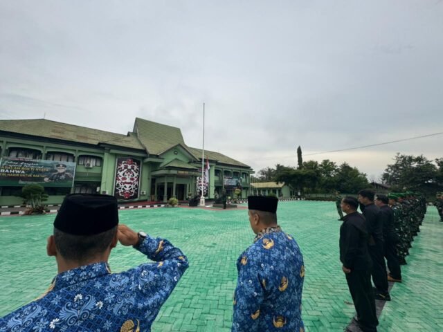 TAPIN – Kodim 1010/Tapin menggelar upacara bendera dalam rangka memperingati Hari Pahlawan Tahun 2025 di halaman Makodim 1010/Tapin, Senin (10/11). Upacara berlangsung khidmat dipimpin oleh Kasdim 1010/Tapin Letkol Czi Sudarno selaku Inspektur Upacara, sementara Komandan Upacara dipercayakan kepada Danramil 1010-07/Piani Kapten Inf Waluyo. Seluruh prajurit dan PNS Kodim 1010/Tapin turut mengikuti upacara dengan penuh penghormatan.