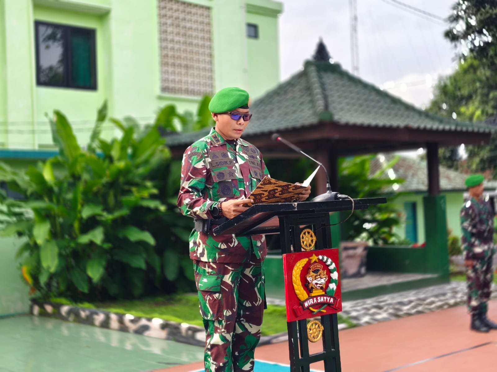 Kegiatan dimulai dengan pengibaran bendera Merah Putih, diiringi pembacaan Teks Pancasila oleh Inspektur Upacara, serta diakhiri dengan pengucapan Sapta Marga dan Sumpah Prajurit. Upacara ini berlangsung dengan lancar dan penuh khidmat, mencerminkan dedikasi para prajurit terhadap tugas dan negara.