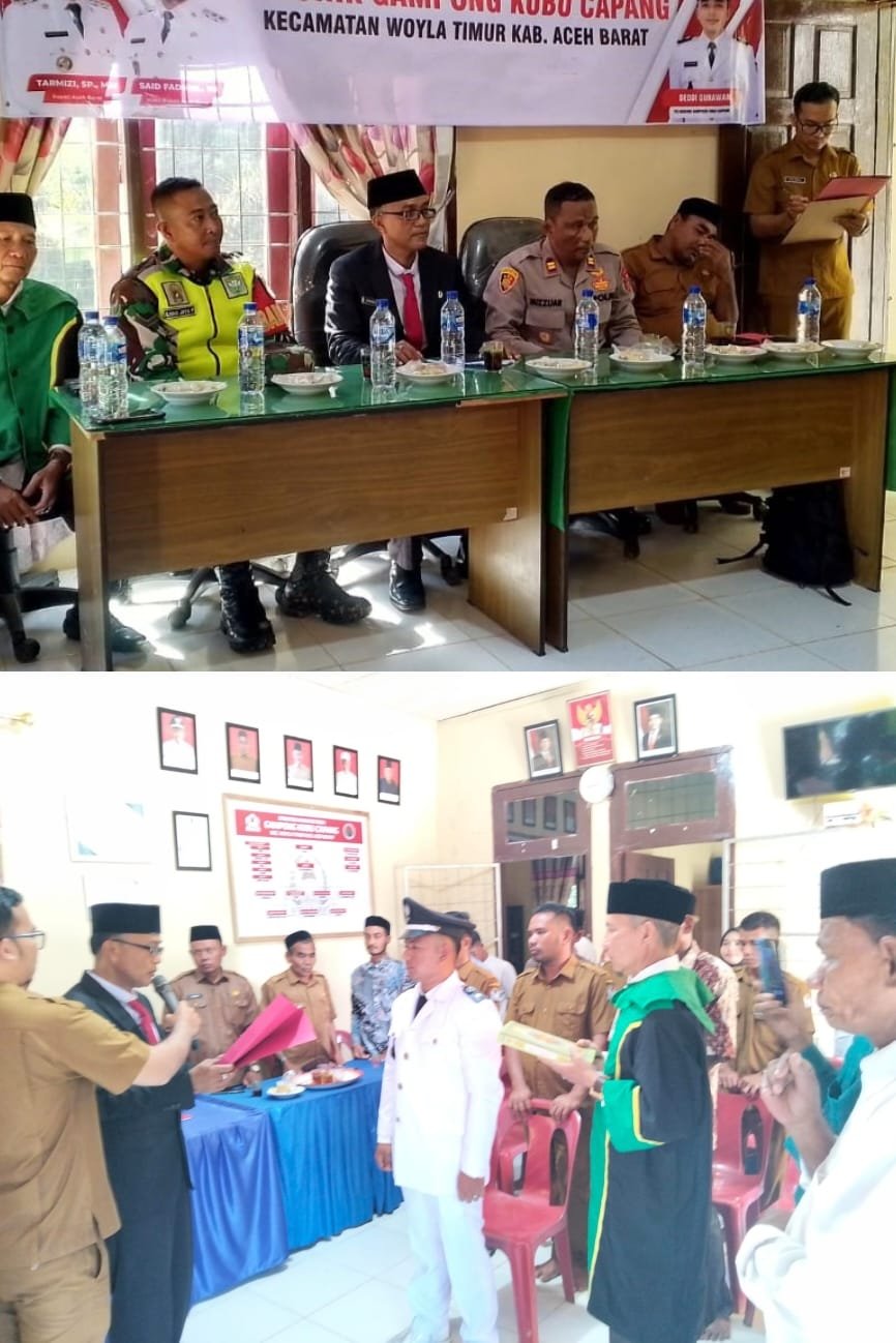 Sementara itu, keuchik baru Desa Kubu Capang dalam sambutannya menyampaikan komitmen untuk melanjutkan program-program desa yang telah berjalan serta meningkatkan pelayanan kepada masyarakat.