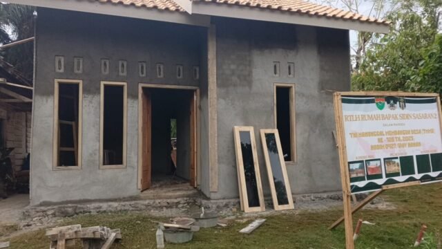 Way Kanan – Kebahagiaan terpancar dari wajah Bapak Sidin, warga Dusun 2 RT.005 Kampung Sriwijaya, Kecamatan Umpu Semenguk. Rumahnya yang sebelumnya tidak layak huni kini hampir selesai direhabilitasi oleh Satgas TNI Manunggal Membangun Desa (TMMD) ke-126 Kodim 0427/Way Kanan. Progres pembangunan rumah tersebut kini telah mencapai 85 persen.