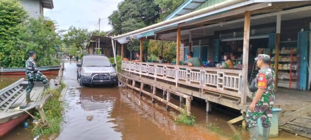 Sintang – Waspada bencana banjir akibat dari tingginya curah hujan, Babinsa Koramil 1205-09/Ketungau Tengah Sertu Idi melakukan peninjauan langsung ke wilayah binaannya guna melakukan monitoring dan memberikan himbauan kepada warga di Kecamatan Ketungau Tengah, Kabupaten Sintang, Jumat (31/01/2025).