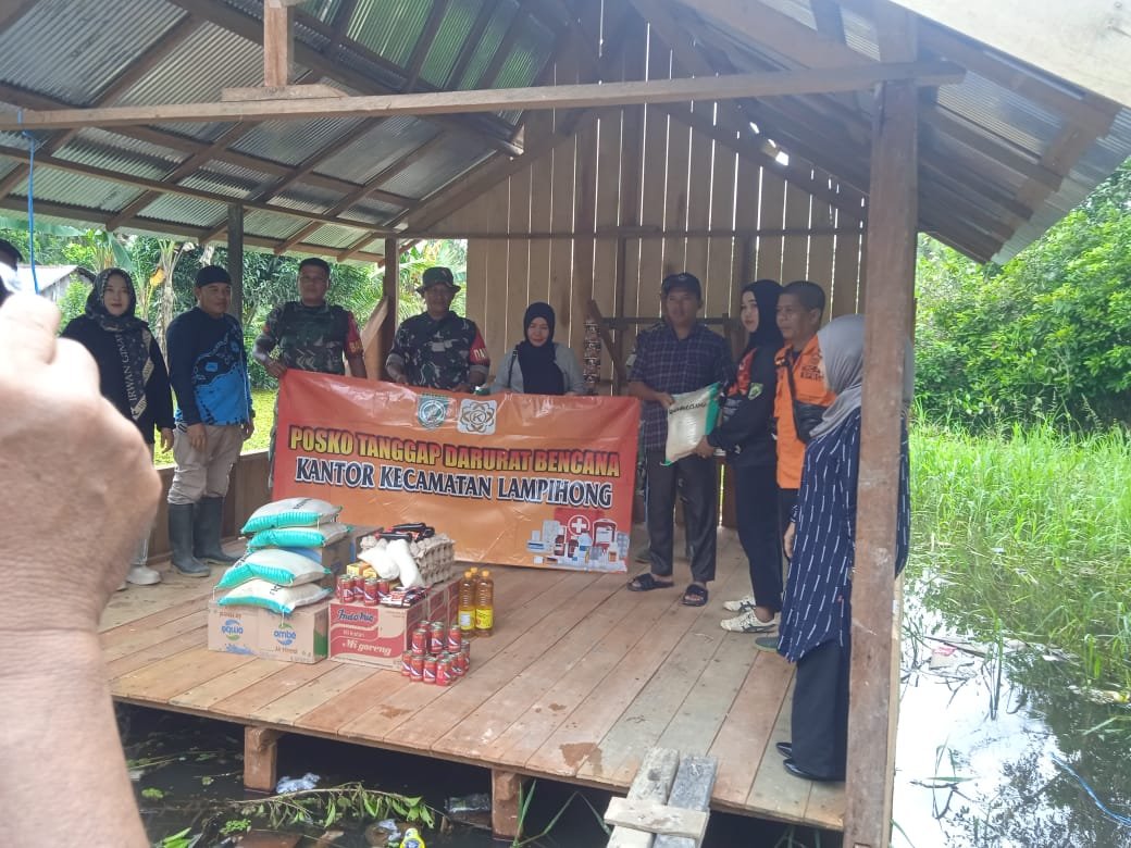 Ws. Danramil 1001-05/Lampihong, Pelda Rimba, menyampaikan bahwa kehadiran TNI bersama unsur terkait di tengah masyarakat merupakan wujud nyata sinergi dan komitmen dalam membantu warga yang terdampak bencana. “Kami berharap bantuan ini dapat meringankan beban masyarakat serta membantu memenuhi kebutuhan pokok sehari-hari pasca banjir,” ujarnya.